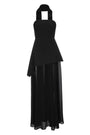 Dieses atemberaubende Abendkleid besticht durch sein figurbetontes Oberteil und einen einzigartigen, asymmetrisch fließenden Rock, der bei jeder Bewegung Eleganz ausstrahlt. Die breiten Träger, die hinten zu einem stilvollen Detail verbunden sind, verleihen dem Design eine moderne Note. Ein seitlicher, semitransparenter Stoffeinsatz sorgt für einen dezenten, aber aufregenden Look. Das Kleid ist in mehreren eleganten Farbtönen erhältlich, sodass du den perfekten Farbton für deinen Anlass wählen kannst. Es kombiniert zeitlose Eleganz mit einem Hauch von moderner Raffinesse.