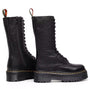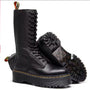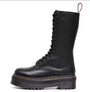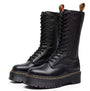 Diese kniehohen Plattform-Stiefel im Punk-Stil verfügen über eine auffallend dicke Sohle und einen robusten Absatz. Das Design ist aus echtem Leder gefertigt und zeichnet sich durch eine Schnürung und eine hohe Silhouette aus. Sie fallen klein aus.