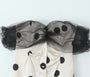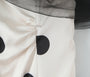 Dieses elegante und verspielte Minikleid ist ein absoluter Hingucker für jeden Anlass. Es besticht durch ein strukturiertes, schulterfreies Oberteil mit einem weißen Stoff, der von schwarzen Polka Dots verziert wird. Die voluminösen Ärmel aus schwarzem Mesh-Gewebe verleihen dem Kleid eine dramatische und moderne Note. Das Design kombiniert eine verspielte Ästhetik mit einem glamourösen Touch, perfekt für Partys oder besondere Abende.