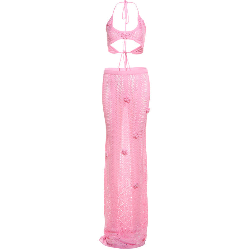 Dieses elegante und zugleich lässige Strick-Set ist der perfekte Begleiter für stilvolle Auftritte im Sommer. Das Set besteht aus einem ärmellosen Oberteil in A-Linie und einer passenden, hoch taillierten Hose mit weitem Bein. Das Set besticht durch seine feine vertikale Rippenstruktur, die der Figur eine schmeichelhafte, streckende Optik verleiht. Das leichte Strickmaterial sorgt für ein angenehmes und luftiges Tragegefühl, ideal für warme Tage. Ein vielseitiger Zweiteiler, der Komfort und Eleganz vereint.