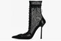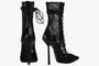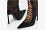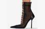 Diese eleganten Ankle Boots kombinieren ein Schnürdesign mit transparenten Mesh-Einsätzen für einen raffinierten Look. Sie sind aus Kunstleder gefertigt und verfügen über einen hohen Stiletto-Absatz von über 10 cm, der die Beine optisch verlängert.
