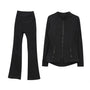 Dieses stylische Sport-Set ist die perfekte Kombination aus Funktionalität und modernem Design. Das Set besteht aus einer figurbetonten Sportjacke mit durchgehendem Reißverschluss und dazu passenden, ausgestellten Leggings, die für eine schmeichelhafte Silhouette sorgen. Die elastische Qualität garantiert maximale Bewegungsfreiheit und höchsten Komfort, egal ob beim Yoga, im Fitnessstudio oder im Alltag. Die dezenten Ziernähte verleihen dem Outfit einen dynamischen und eleganten Look.