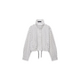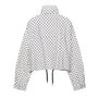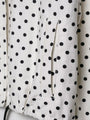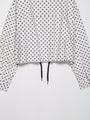 Diese stilvolle und verspielte Bluse besticht durch ihr klassisches Schwarz-Weiß-Punktemuster. Sie hat einen hohen Kragen, weite Ärmel und einen verstellbaren Kordelzug am Saum, der eine individuelle Passform ermöglicht. Das Material ist ein leichtes Polyestergemisch.