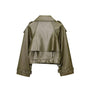 Diese lässige, oversized Bikerjacke ist ein modisches Statement für den Übergang. Sie verfügt über breite Revers und einen Gürtel am Saum, der für eine individuelle Passform sorgt. Die Jacke ist aus PU-Leder gefertigt.