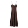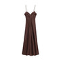 Dieses elegante Midikleid ist ein zeitloses und luxuriöses Stück für deine Garderobe. Es zeichnet sich durch zarte Spaghettiträger und ein figurbetontes Oberteil aus, das in einen weiten, plissierten Rock übergeht. Das Material aus Kunstfaser hat eine glatte Seidenstruktur und fällt fließend, was eine klassische und feminine Ästhetik schafft. Ein ideales Kleid für besondere Anlässe, das gleichzeitig Komfort und Stil bietet.