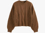 Dieser bequeme, oversized Pullover ist ein vielseitiges Kleidungsstück für die kälteren Tage. Er verfügt über ein gemustertes Strickdesign mit einem zentralen Zopfmuster und voluminösen Ärmeln mit Wabenstruktur. Der Pullover ist aus einem weichen Polyestergemisch gefertigt.