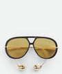 Diese stilvolle Sonnenbrille im modernen Design ist ein zeitloses Accessoire. Sie besticht durch einen robusten, schwarzen Rahmen und goldfarbene Akzente an der Brücke und den Bügeln. Die Gläser haben einen eleganten, gold-gelben Farbton und bieten einen umfassenden UV-Schutz, ideal für sonnige Tage. Das Design ist eine modische Neuinterpretation des klassischen Pilotenstils und macht die Brille zum perfekten Begleiter für jeden Anlass.