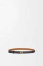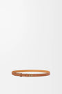 Dieser klassische Gürtel ist ein elegantes und vielseitiges Accessoire, gefertigt aus geschmeidigem Leder. Die schmale Form und die edle, goldfarbene Schnalle in Logo-Form verleihen ihm einen luxuriösen Touch. Er eignet sich perfekt, um jedes Outfit zu vervollständigen, ob zu Jeans oder über einem Kleid.