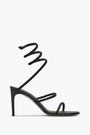 Diese eleganten High-Heel-Sandalen sind ein echter Blickfang und perfekt für besondere Anlässe. Das Design zeichnet sich durch dünne, spiralförmige Riemen und einen schlanken Stiletto-Absatz aus. Die Schuhe sind aus einem Materialmix aus Kunststoff, Kunstleder und Strasssteinen gefertigt.