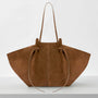 Diese elegante Wildleder-Tasche besticht durch ihr einzigartiges, modernes Design und ihre weiche Haptik. Ihre unverwechselbare Fächerform wird durch seitliche Tunnelzüge betont, die ihr nicht nur eine besondere Optik verleihen, sondern auch das Volumen anpassen. Die schlichten Henkel sorgen für einen komfortablen Tragekomfort über der Schulter oder in der Hand. Die Tasche ist das perfekte Accessoire für den täglichen Gebrauch, das sowohl zu lässigen als auch zu eleganten Outfits eine stilvolle Ergänzung darstellt.