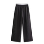 Diese Hose hat ein weites, gerades Bein und ein einzigartiges gestreiftes Patchwork-Design. Der elastische Bund mit Kordelzug sorgt für einen bequemen und sicheren Sitz.