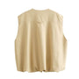 Diese lässige Weste ist das perfekte Layering-Piece für einen modernen und funktionalen Look. Sie besticht durch ihr sportliches Design mit einem praktischen Reißverschluss auf der Vorderseite und zwei großen aufgesetzten Taschen mit Patte. Ein besonderer Hingucker ist der elastische, geraffte Saum, der der Weste eine lockere und zugleich feminine Silhouette verleiht. Das Modell in hellem Beige lässt sich ideal über T-Shirts, Hoodies oder Pullover ziehen und ist die perfekte Ergänzung für jedes Streetwear-Outfit.