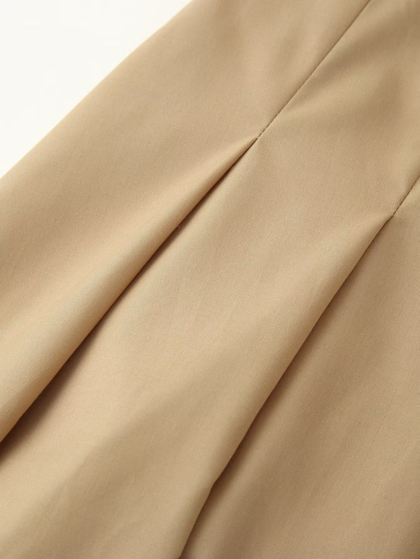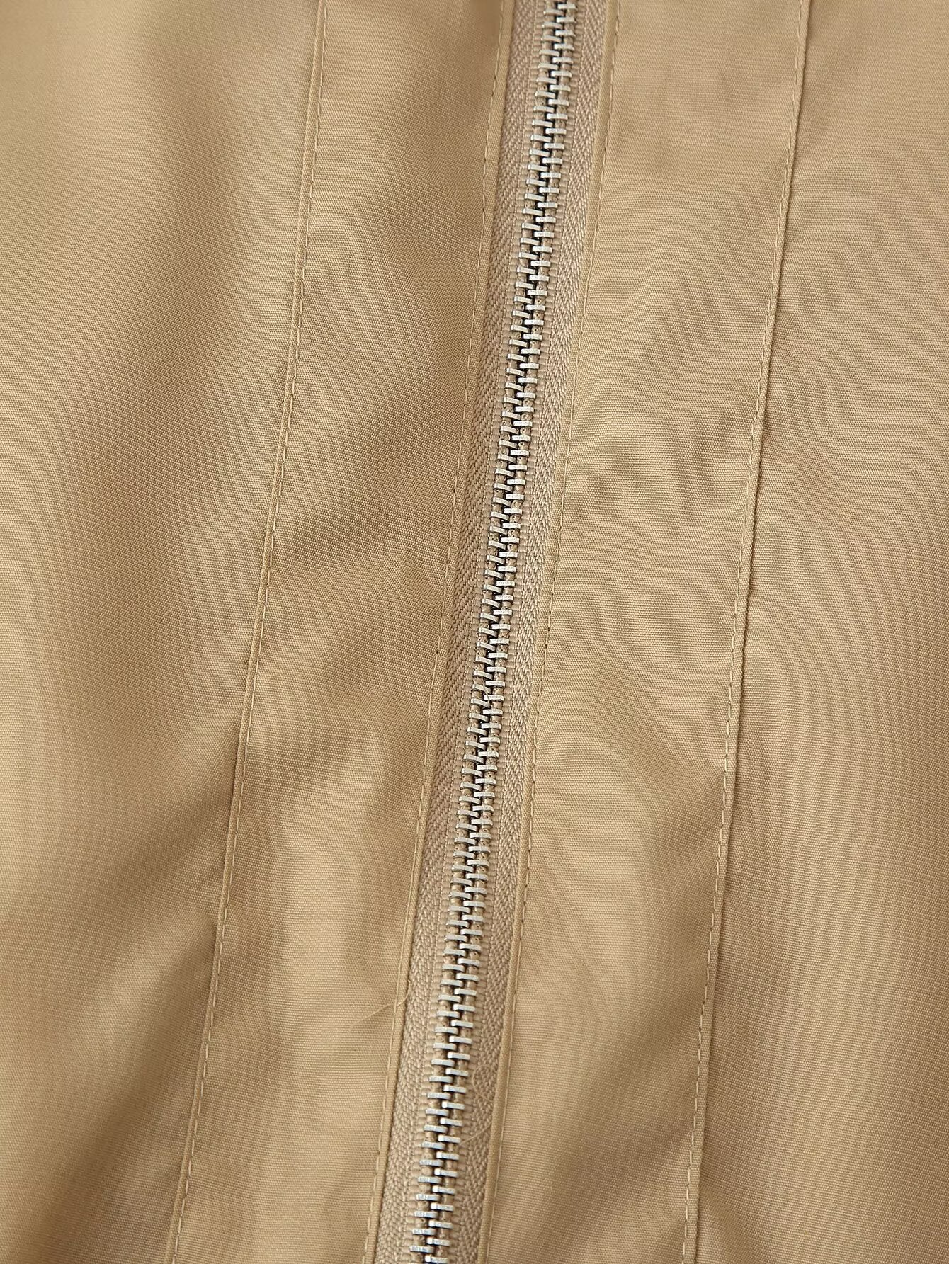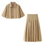 Dieses zweiteilige Set besteht aus einer kurzen, leicht ausgestellten Jacke mit Reißverschluss und einem dazu passenden, plissierten Rock. Das Set ist in einem warmen Braunton gehalten und aus einem Polyestergemisch gefertigt. Der fließende Schnitt sorgt für einen eleganten und modernen Look.