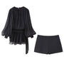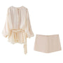 Dieses elegante Zweiteiler-Set ist ein stilvolles Must-have für deine Garderobe. Es besteht aus einem luftigen, voluminösen Oberteil mit langen Ärmeln und einem passenden, hoch taillierten Minirock mit schlichter Silhouette. Das Set ist aus einem leichten Polyester-Material gefertigt, das eine fließende Bewegung und ein angenehmes Tragegefühl garantiert. Ein perfektes Outfit, das sich vielseitig kombinieren lässt, ob für einen besonderen Anlass oder einen entspannten Tag in der Stadt.
