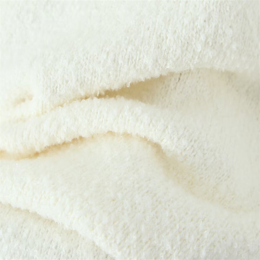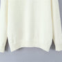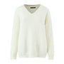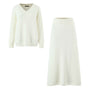Dieses zweiteilige Strickset in hellem Weiß besteht aus einem Pullover mit V-Ausschnitt und einem dazu passenden Midi-Rock. Das Set ist aus einem weichen Polyestergemisch gefertigt und ideal für einen bequemen und femininen Look.